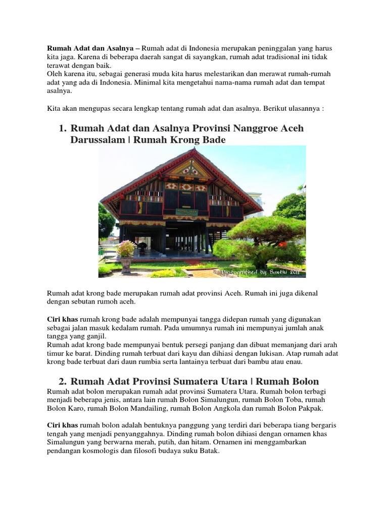 Nama Nama Rumah Adat Daerah Di Indonesia Beserta Daerah Asalnya